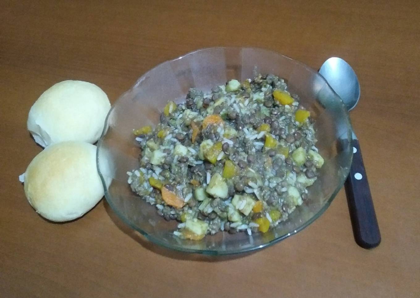 - Incorporar las lentejas junto con el agua de la cocción preferentemente hirviendo o caliente y el cubito de caldo. Agregar las zanahorias cortadas y dejar que se cocinen por unos minutos. Luego incorporar la papa cortada pequeña también y cuando esta se empiece a cocer, el zapallo ya cortado el trozos. Si se seca demasiado, agregar un poco de agua hirviendo, pero de a poco, para que no quede como una sopa.