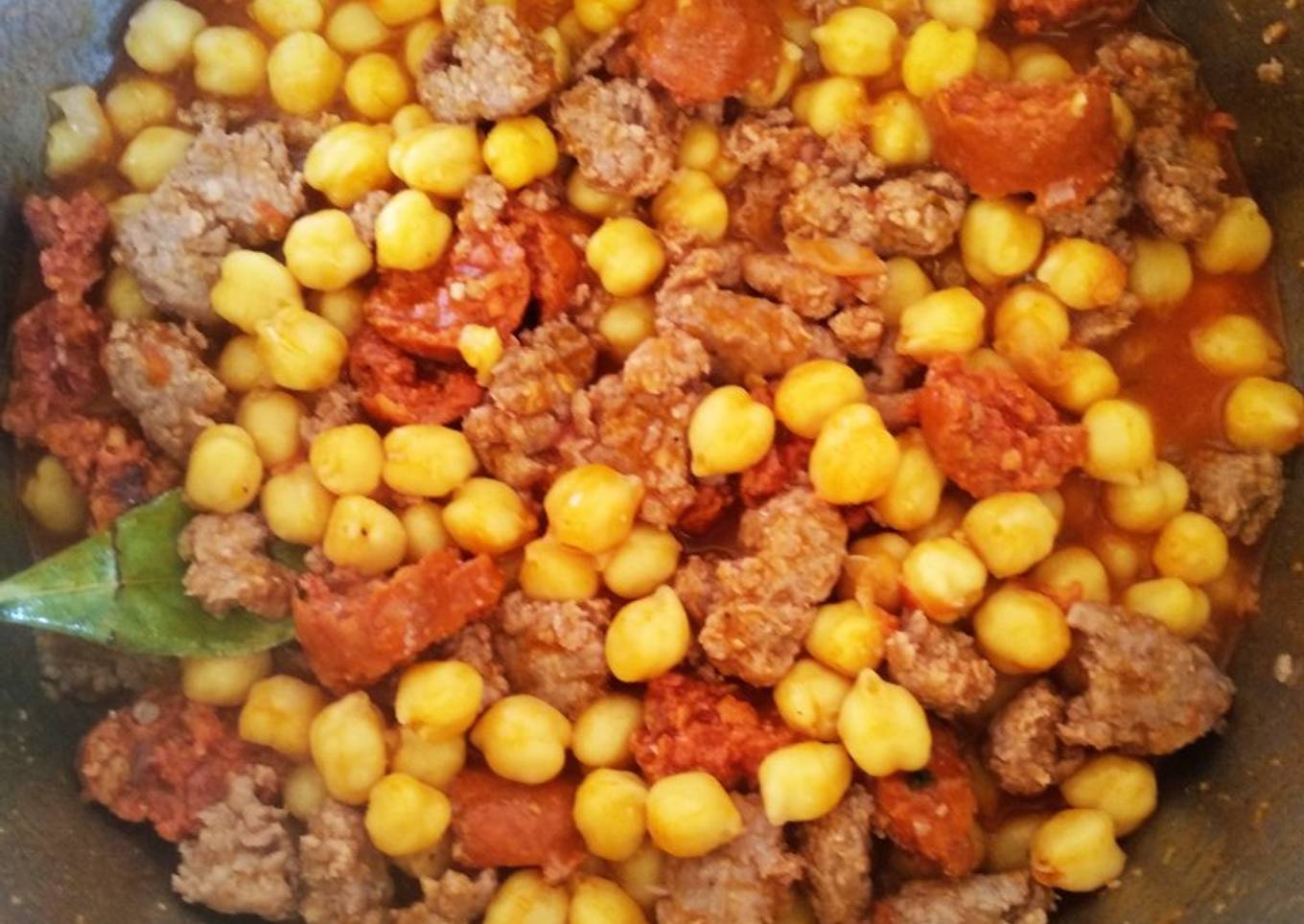 Garbanzos de bote con chorizo y carne picada