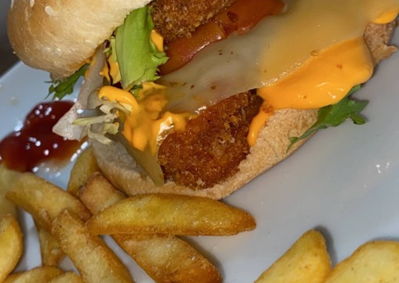 Hamburguesa de pollo crujiente🍔🍟