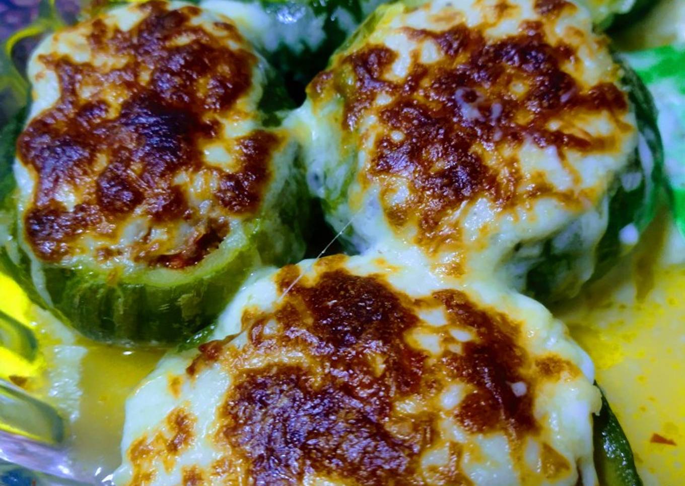 - Rellenar los zapallitos con el relleno y agregar salsa blanca y queso cremoso rallado(o lo que más prefieran😃)