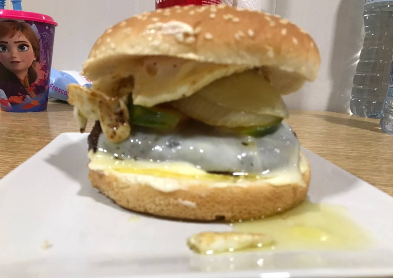- Una vez hecho el huevo lo ponemos encima de la cebolla y ponemos la parte de arriba del pan. A disfrutar!