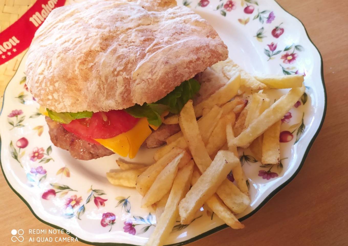 - Freímos las patatas, cortamos el tomate en rodajas