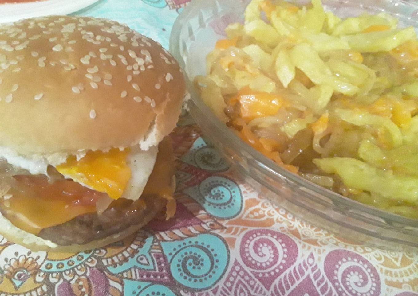 Hamburguesa馃崝 Tipo mc con guarnici贸n de papas cebolla y cheddar馃い is one of the most well liked of current trending meals in the world. It is appreciated by millions every day. It's simple, it is quick, it tastes yummy. They're nice and they look wonderful. Hamburguesa馃崝 Tipo mc con guarnici贸n de papas cebolla y cheddar馃い is something that I've loved my whole life.