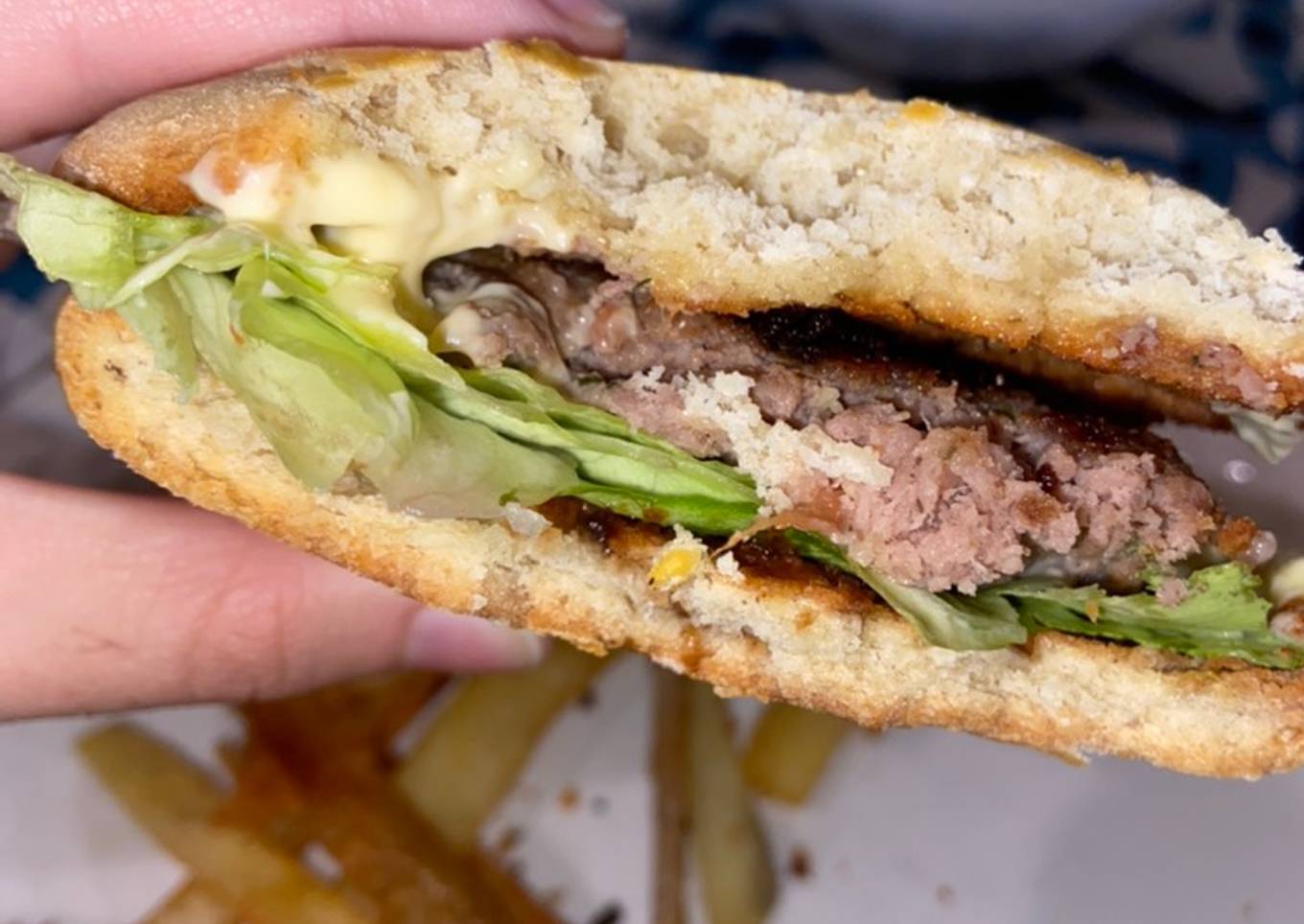 - Para finalizar, cortar el pan en 2, untar lo que quieran de condimento, agregar la hamburguesa, más todo lo que quieran!!