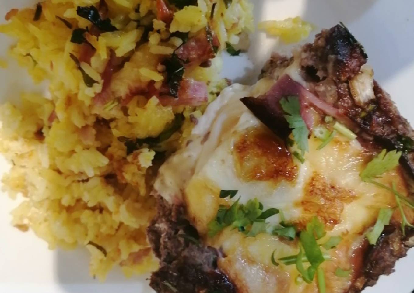 - Aliñar la carne a gusto y agregar 1 huevo y pan rallado, luego colocar en Molde rectangular, dejen un huevo al centro.