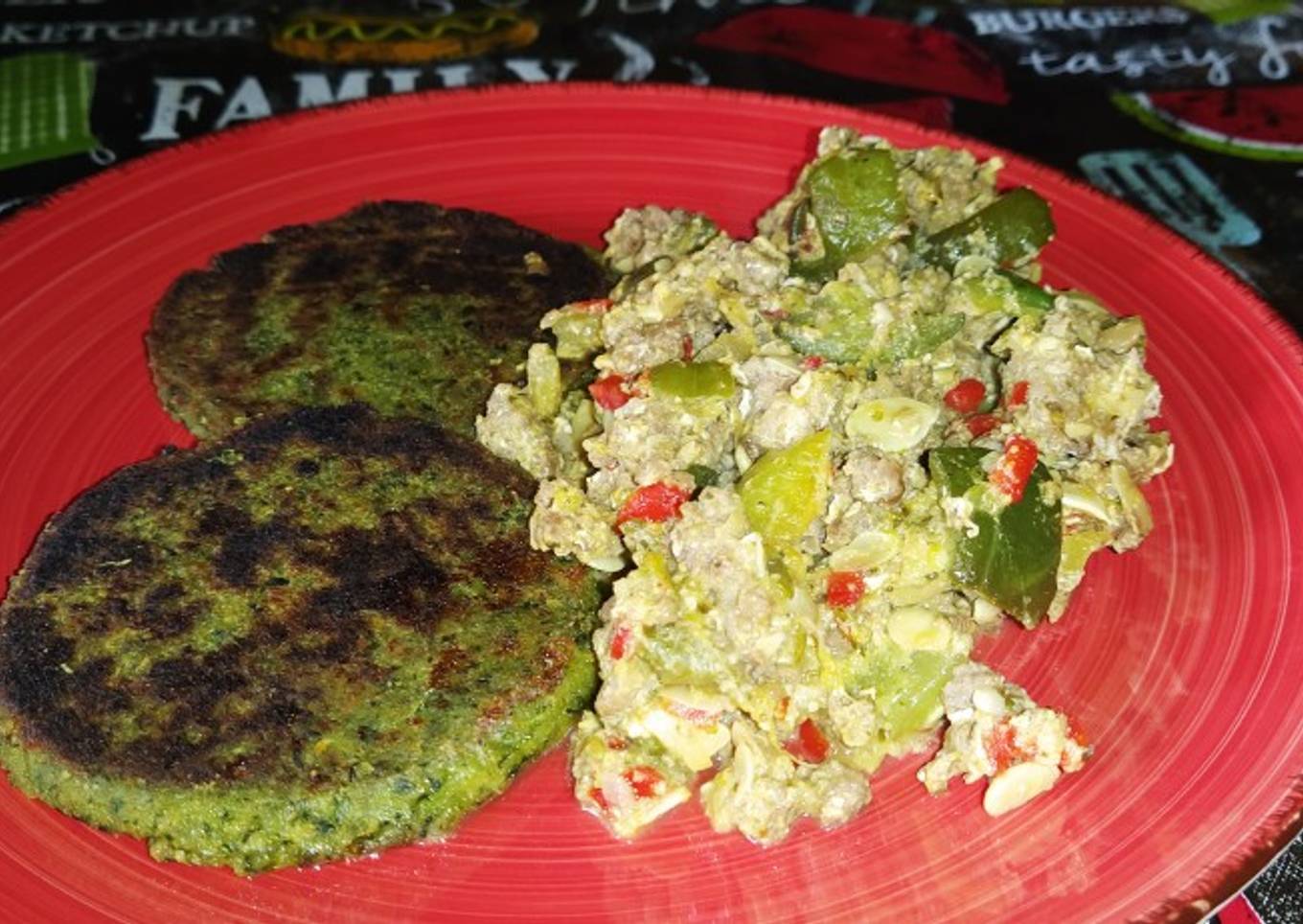Hamburguesas de espinaca con revuelto de zapallitos y carne