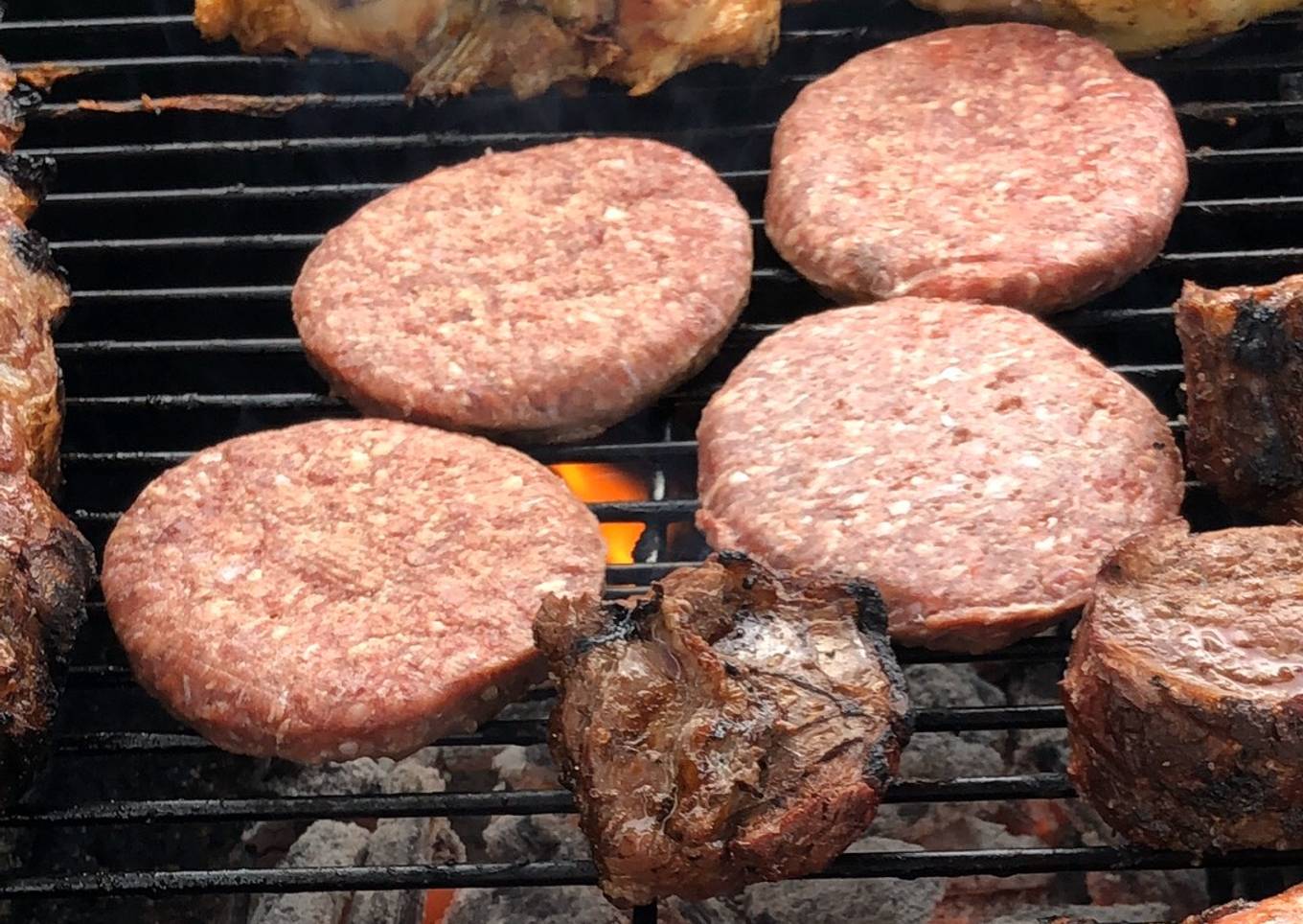 - Cuando vimos a los chicos con algo de apetito tiramos las hamburguesas directo a la parrilla como vienen condimentadas no es mucho más.