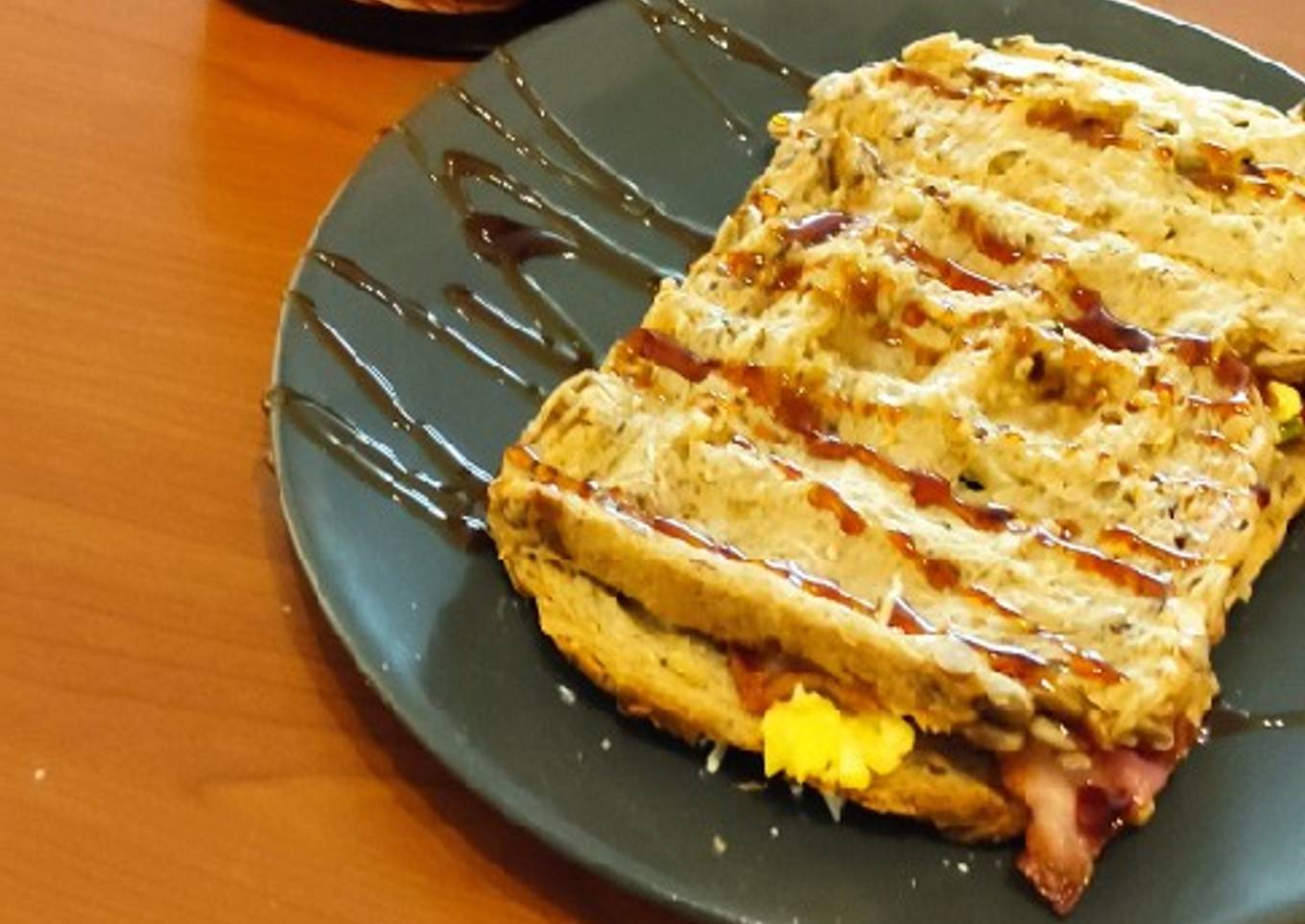 - Simple, ponemos de nuevo una tajada de pan sobre la wafflera, añadimos mantequilla, agregamos el huevo, queso, espinaca y tocino, terminamos con la otra tajada de pan y cerramos.
