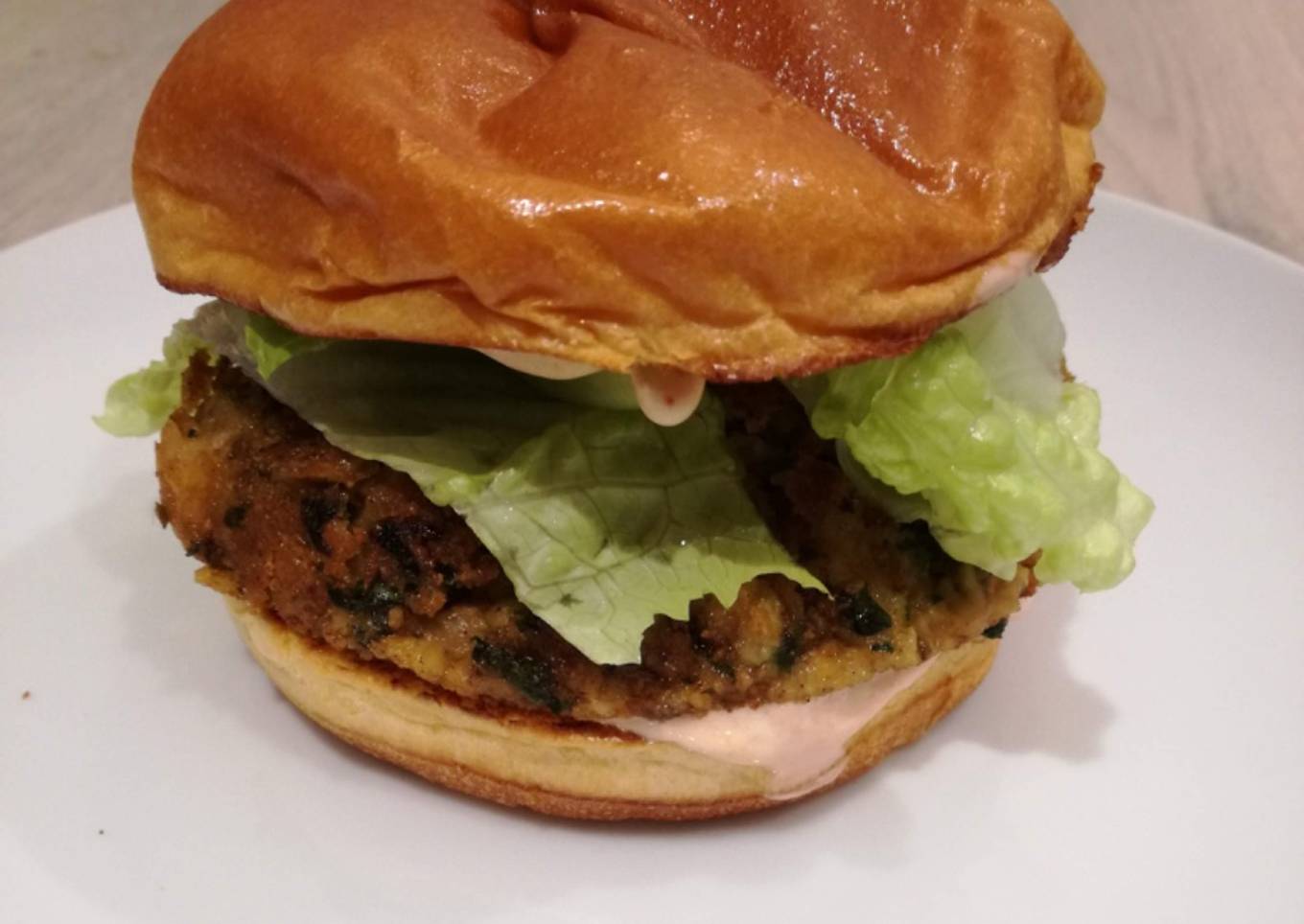 - Hacer una salsa con el yogur, la harissa y el zumo de limón. Untar la parte tostada de abajo del pan, disponer la hamburguesa añadir algunas hojas de ensalada y tapar con la parte de arriba tostada untada con salsa yogur.