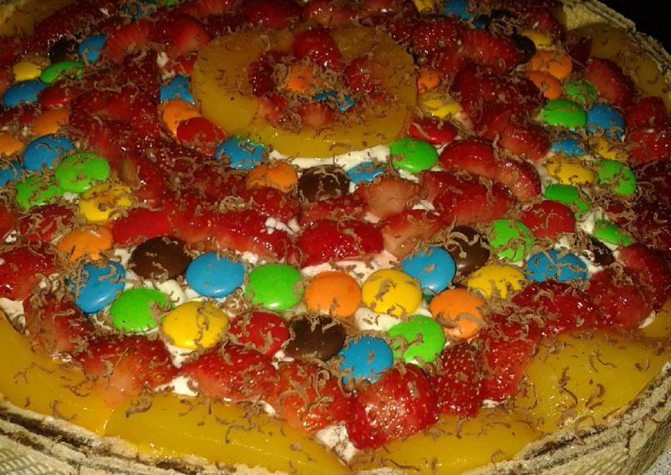 - Para la parte superior se pueden colocar confites, duraznos, frutillas o cualquier otra cosa que se desee.