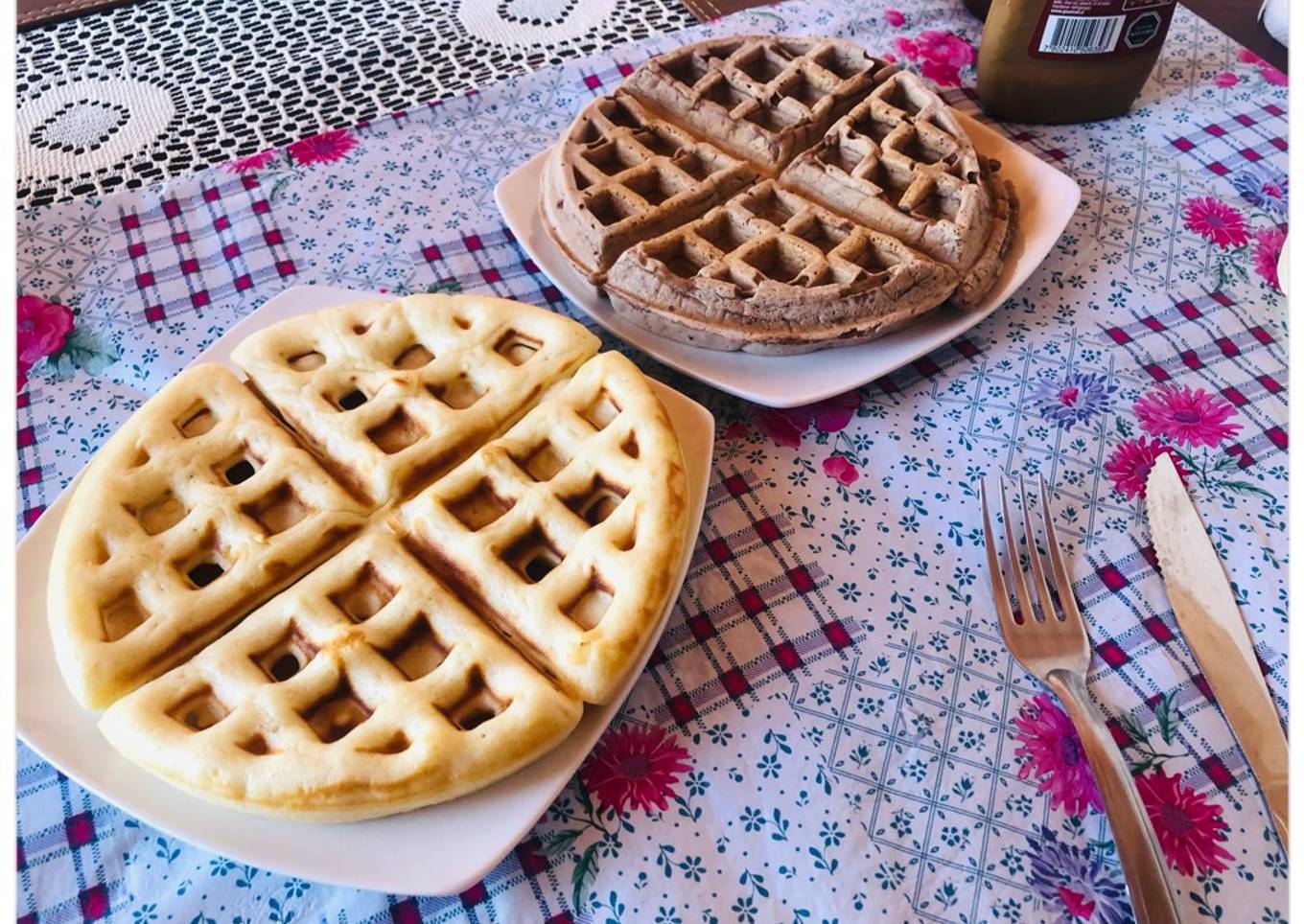 - Para los de chocolate agrega 1/2 cdita de cacao en polvo. Poner en la wafflera y listo!